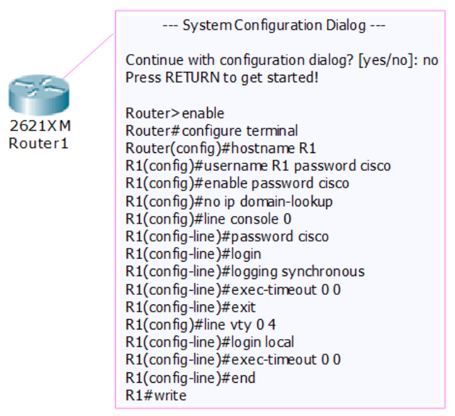 R1(config-line)#password cisco // 패스워드를 cisco로 설정
