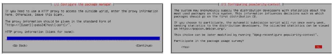 step14> 만약 내부 네트워크에 프록시 서버가 존재한다면 프록시 서버의 주소와 포트를 입력 합니다. 패키지의 인기도 및 사용통계에 관련한 설문은 생략하기 위해 “No” 선택합니다.