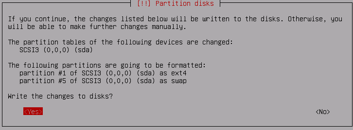 step11> 리눅스 파티션 설정을 저장합니다.(“바뀐 점을 디스크에 쓰시겠습니까?”, yes)
