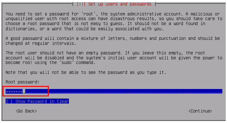 step7> 리눅스 시스템의 최고 관리자인 root 계정 암호를 결정합니다. 입력된 값이 명확한지, 오류를 방지하기 위해 위해 한번 더 password 를 입력하셔야 합니다.