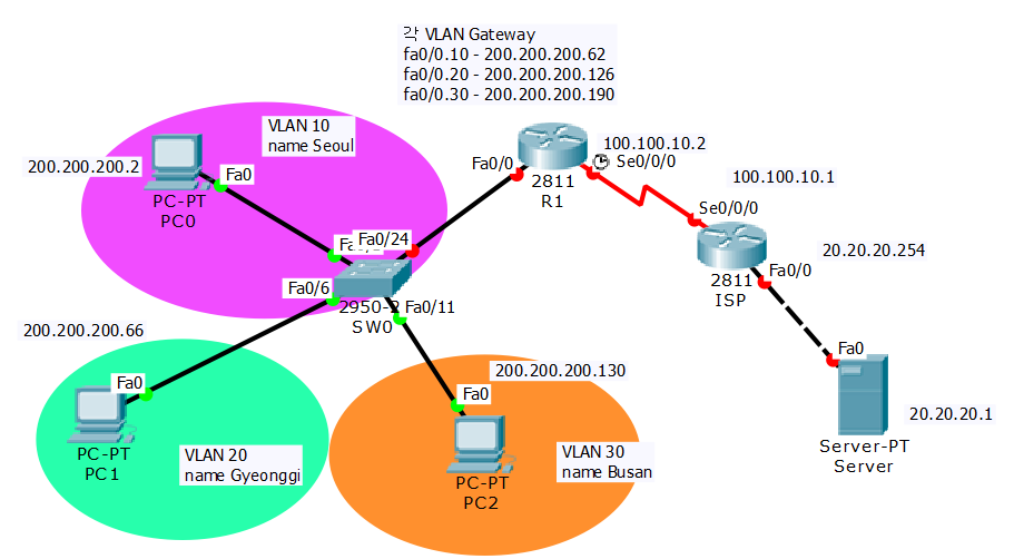 SW0(config-vlan)#name Seoul // VLAN 10 번 이름을 Seoul로 설정