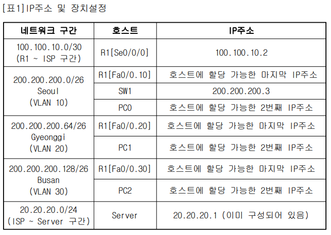 따라서 100.100.10.0 ~ 100.100.10.3 범위이며 100.100.10.0 네트워크 대역으로 100.100.10.3 마지막 IP는 브로드캐스트 주소 임에 따라 ISP[Se0/0/0] 할당 가능한 IP 주소는 100.100.10.1 으로 할당해야 함.